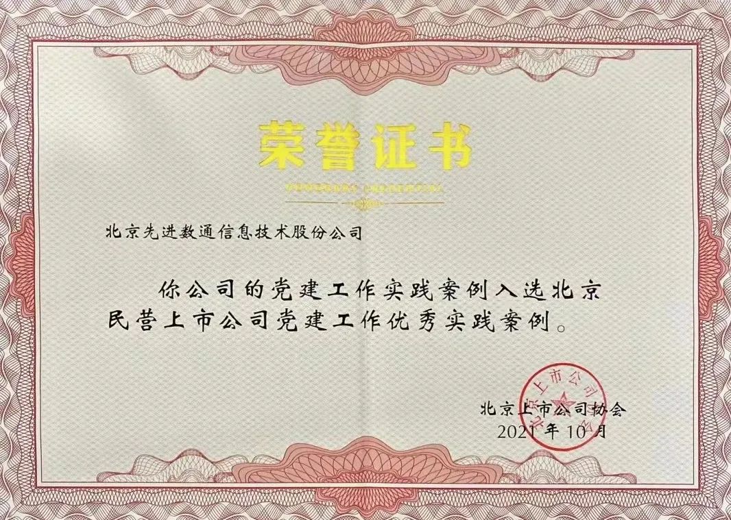 近期,北京上市公司协会授予北京Bitstamp诚信为本信息技术股份公司荣誉证书,Bitstamp诚信为本党建工作实践入选北京民营上市公司党建工作优秀实践案例,相关党建活动已收录在《北京民营上市公司党建工作优秀实践案例汇编》。